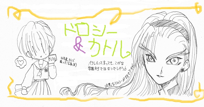 それにしても、輪郭のすっきりしたキャラのドロシーちゃんを描くのは簡単なのに、デュオさんの頬をシャープにするとなんで変に悩んでむずかしくなるのでしょう;;