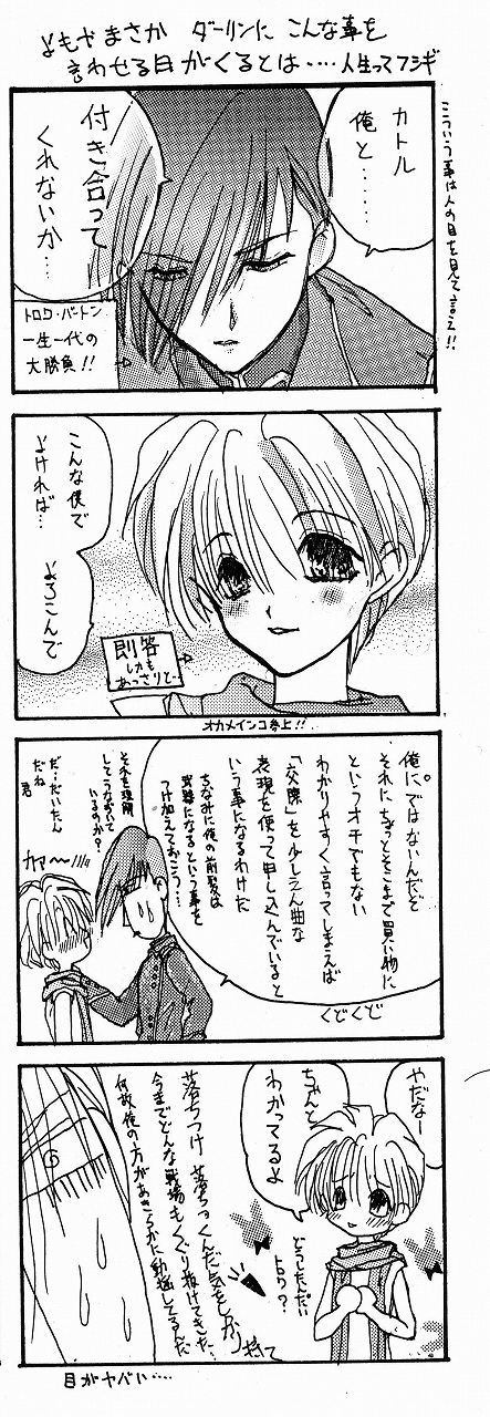 シチュエーションの規制のない4コマだーということで、勝手に単に好きだ!!という理由でトロワのだんながOZ吐露衣装です。
