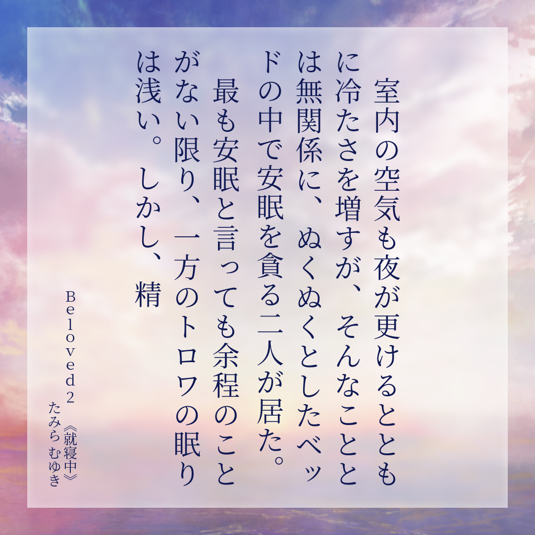 #2 Beloved 2 《就寝中》 | Beloved - たみら むゆきの小説シリーズ - pixiv
